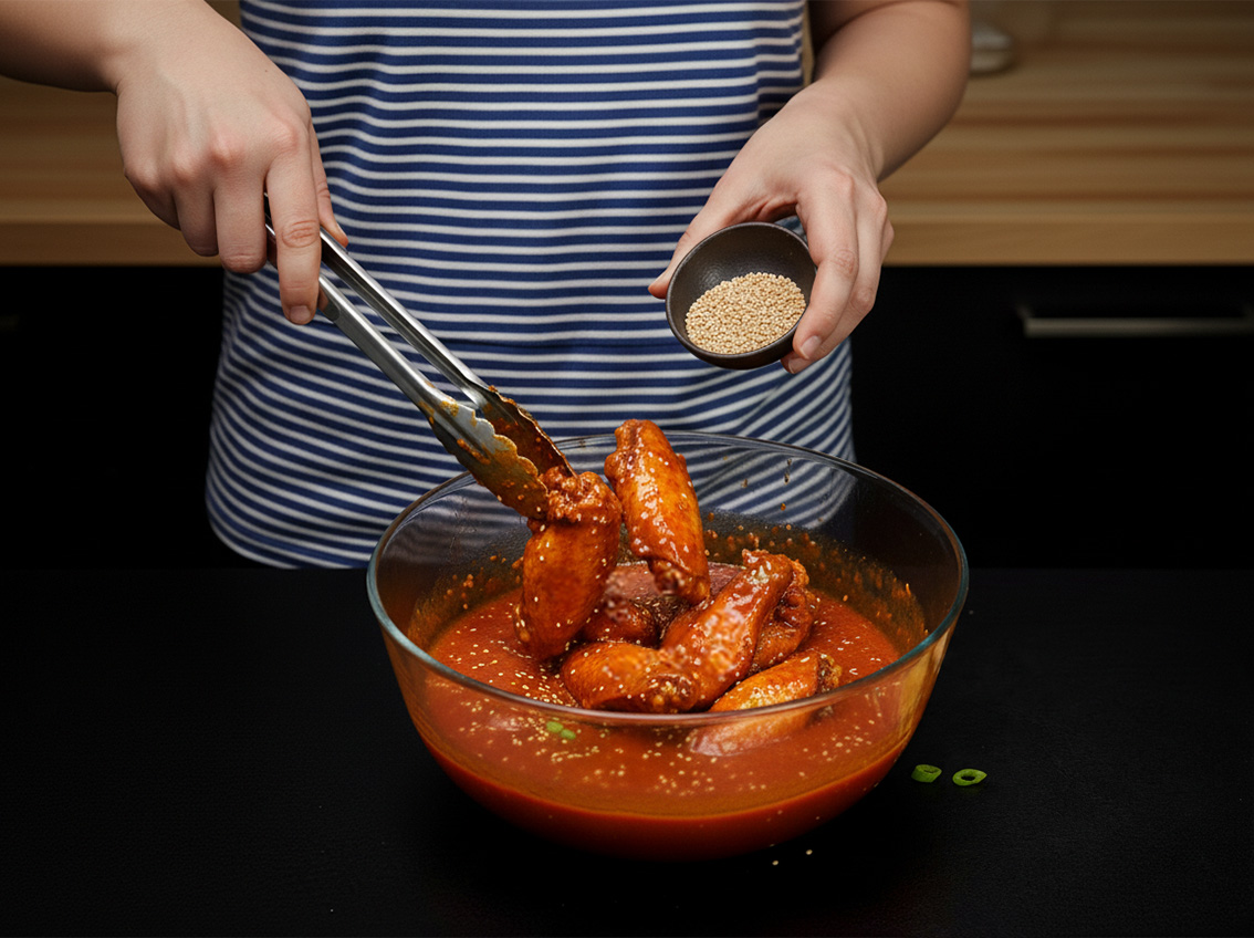 Toss the wings in the sauce until they are completely coated.